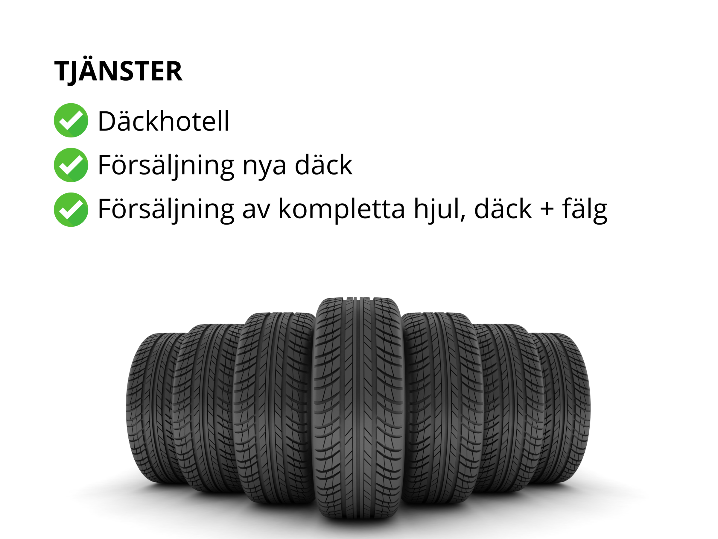Vi erbjuder förvaring av hjul på vårat däckhotell.